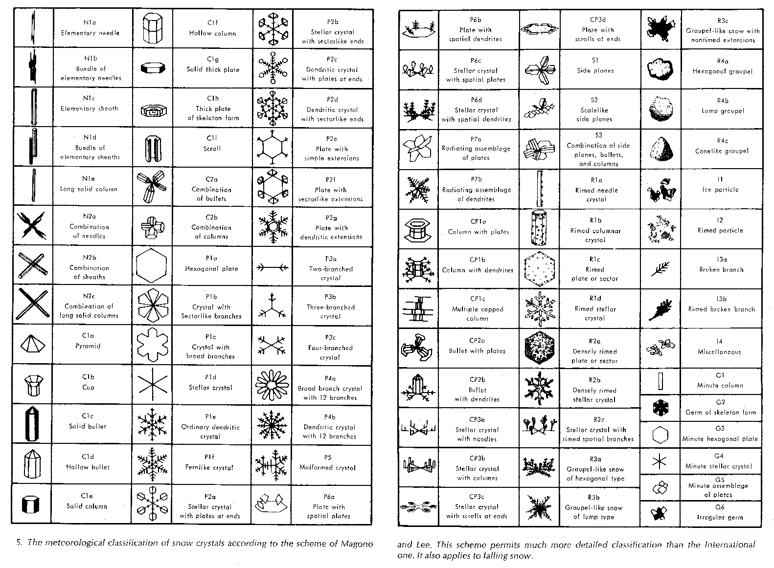 Magono et Lee ont proposé en 1966 une amélioration de la classification de Nakaya, répertoriant 80 types de cristaux.