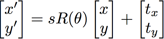 which consists of a rotation by , an isotropic scaling (i.e. same in all directions) by s, and a translation by a vector (tx, ty). This transformation is specified by four parameters (s, , tx, ty) and can be computed from a single correspondence between SIFT detections in each image.