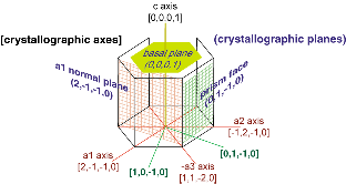 Le prisme hexagonal est la forme la plus simple d'un cristal de glace. Cette forme minimise l'énergie, du fait de l'agencement particulier des molécules d'eau dans la structure cristalline. En particulier les faces planes sont énergétiquement favorables. On note déjà que ces cristaux simples peuvent appartenir à des familles différentes des classifications, selon qu'ils sont plus ou moins allongés sur l'axe c (voir la figure précédente). Un cristal étiré sur l'axe c est plutôt du type colonne, tandis qu'un cristal dont les dimensions sont plus grandes sur les axes a est de la forme plaquette.